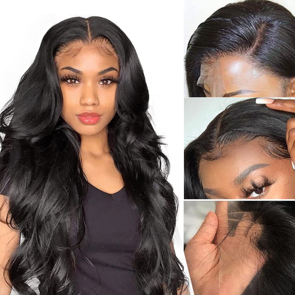 Amazon Com Body Wave Lace Closure Wig Human Hair 13x4 Glueless Lace Closure Wig Human Hair Wigs For Black Women Brazilian Hair Pre Plucked Bleached Knots Wet And Wavy Natural Black 20inch